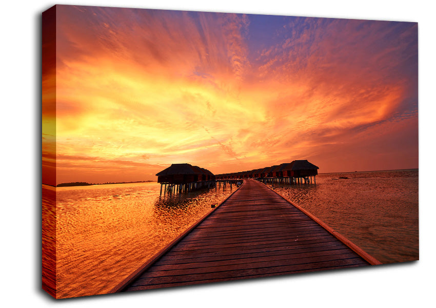 Ocean Honeymoon Retreat Canvas Print handmade in the UK. Stretched over a 2 inch thick wooden box frame, ready to hang on your wall.