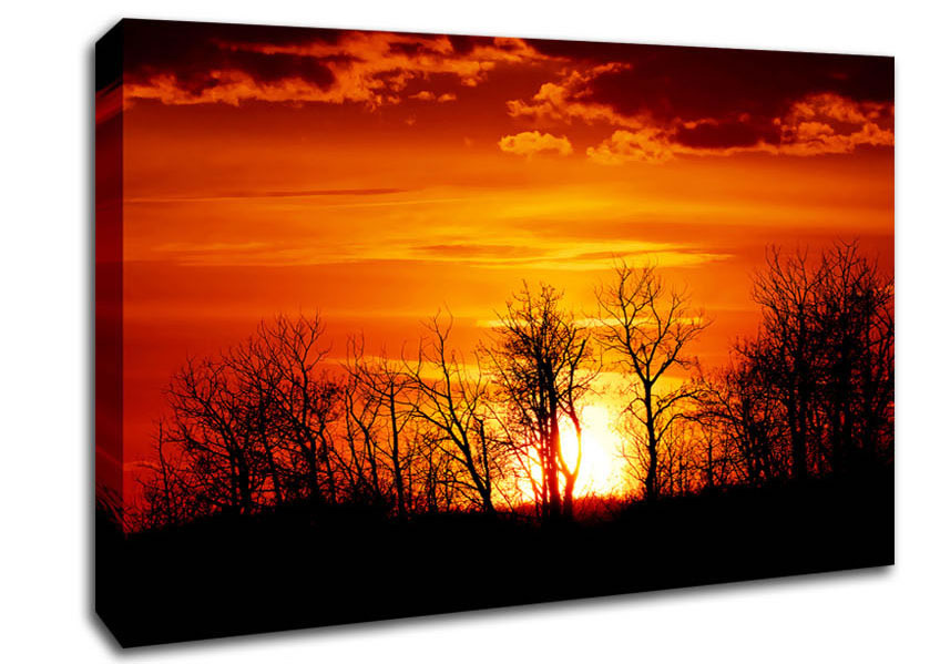 Orange Sunset Treeline Canvas Print handmade in the UK. Stretched over a 2 inch thick wooden box frame, ready to hang on your wall.