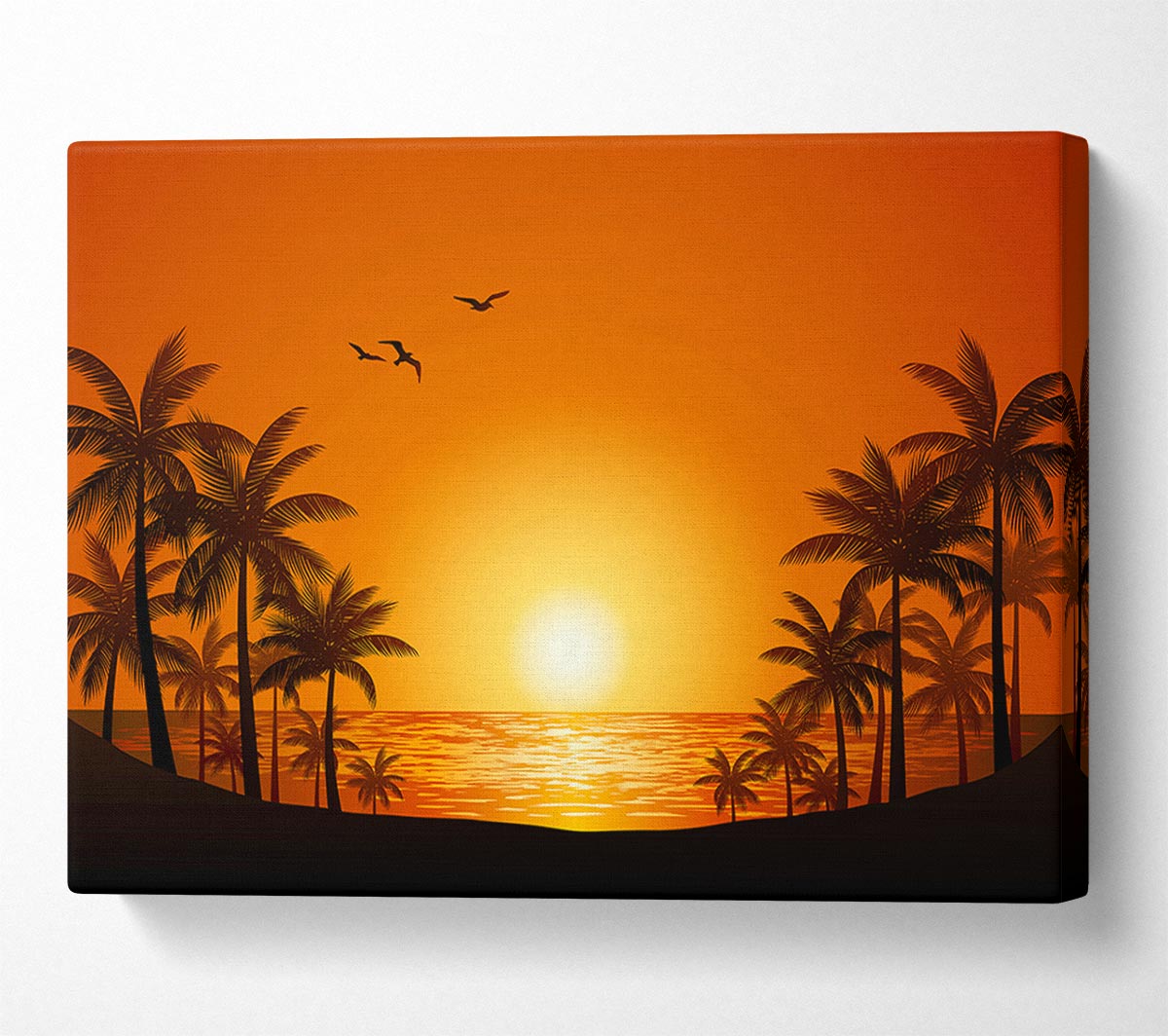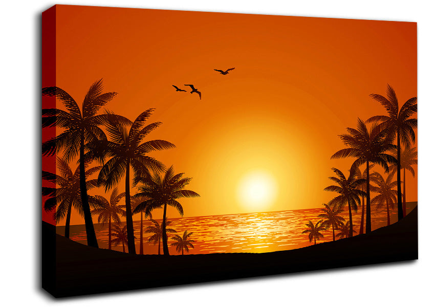 Palm Tree Delight Canvas Print handmade in the UK. Stretched over a 2 inch thick wooden box frame, ready to hang on your wall.