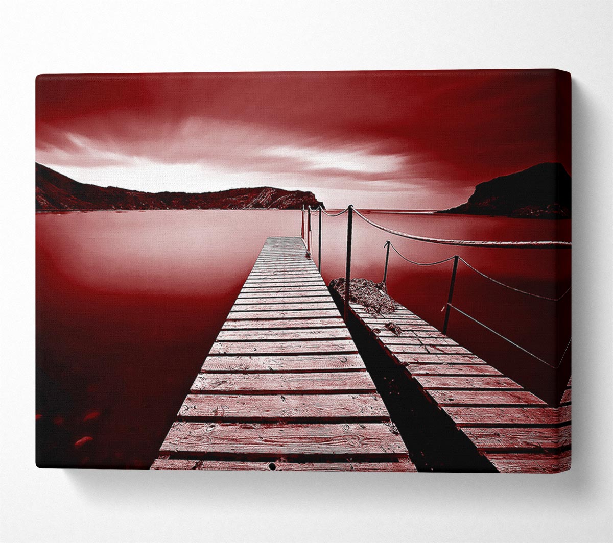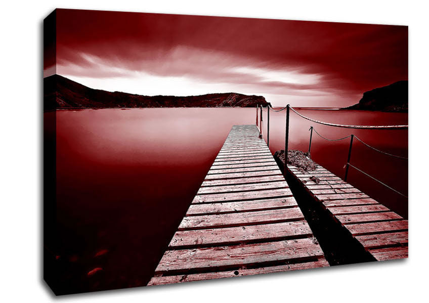 Red Abstract Pier Canvas Print handmade in the UK. Stretched over a 2 inch thick wooden box frame, ready to hang on your wall.