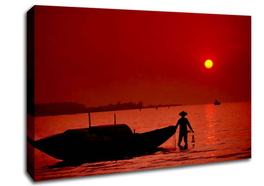 Red Fishermans Ocean Canvas Print handmade in the UK. Stretched over a 2 inch thick wooden box frame, ready to hang on your wall.