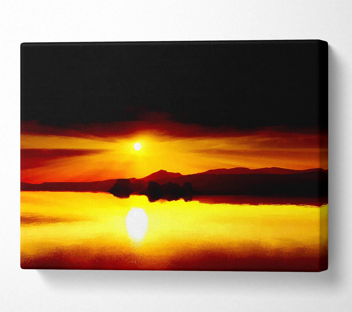 Red Waters Mountain Sunrise Canvas Print handmade in the UK. Stretched over a 2 inch thick wooden box frame, ready to hang on your wall.
