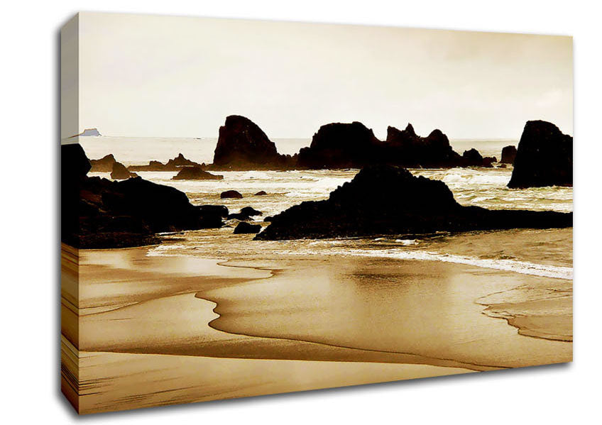Sepia Ocean Delight Canvas Print handmade in the UK. Stretched over a 2 inch thick wooden box frame, ready to hang on your wall.