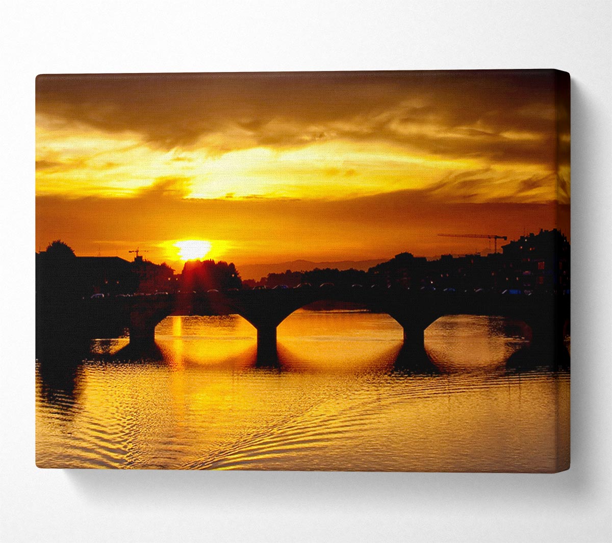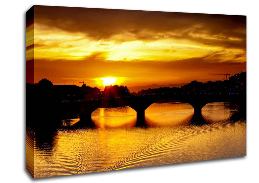 Sunset Over Florence River Canvas Print handmade in the UK. Stretched over a 2 inch thick wooden box frame, ready to hang on your wall.