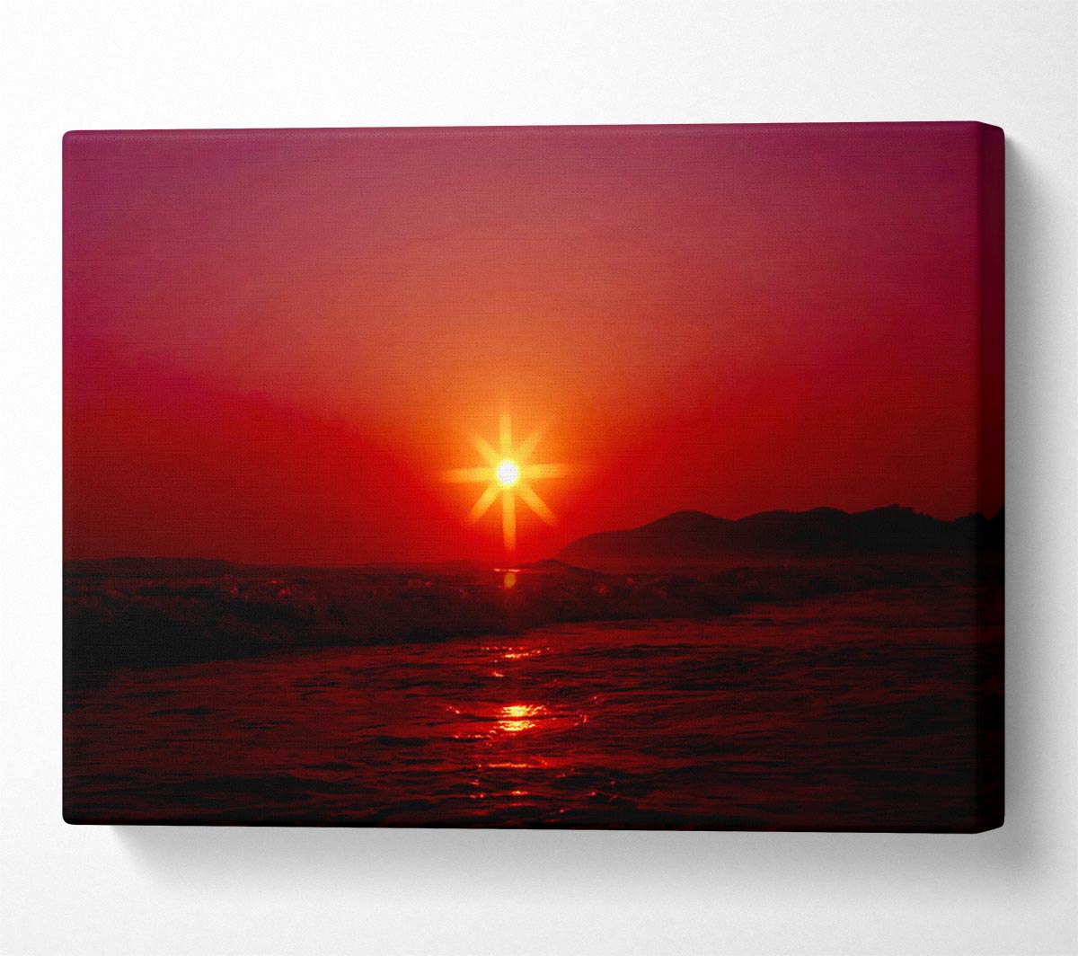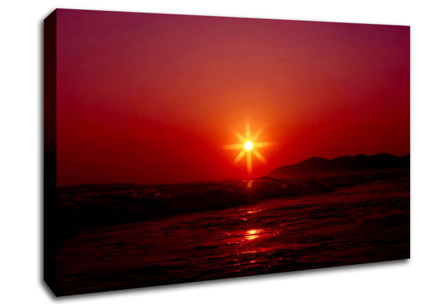 Sunstar Red Canvas Print handmade in the UK. Stretched over a 2 inch thick wooden box frame, ready to hang on your wall.