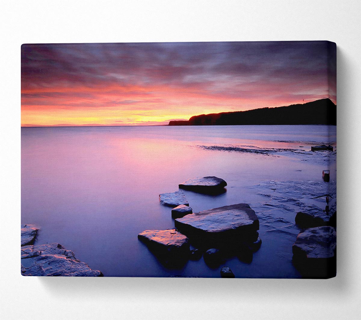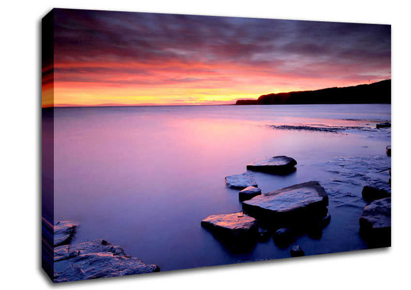 Tranquil Ocean Dusk Canvas Print handmade in the UK. Stretched over a 2 inch thick wooden box frame, ready to hang on your wall.