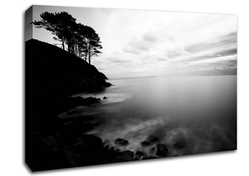 Tree Top Ocean Calm B n W Canvas Print handmade in the UK. Stretched over a 2 inch thick wooden box frame, ready to hang on your wall.