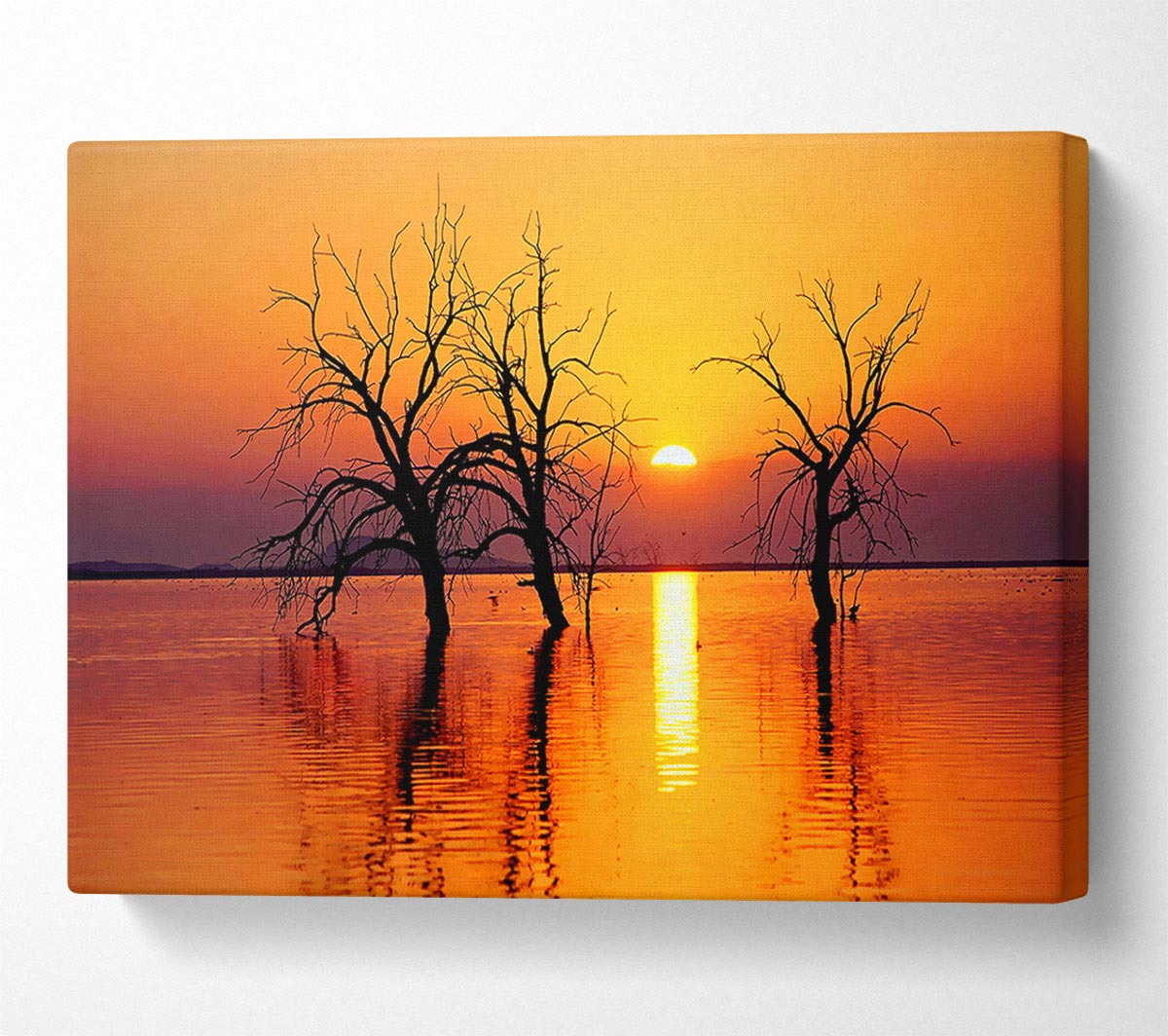 Trees In The Ocean Canvas Print handmade in the UK. Stretched over a 2 inch thick wooden box frame, ready to hang on your wall.