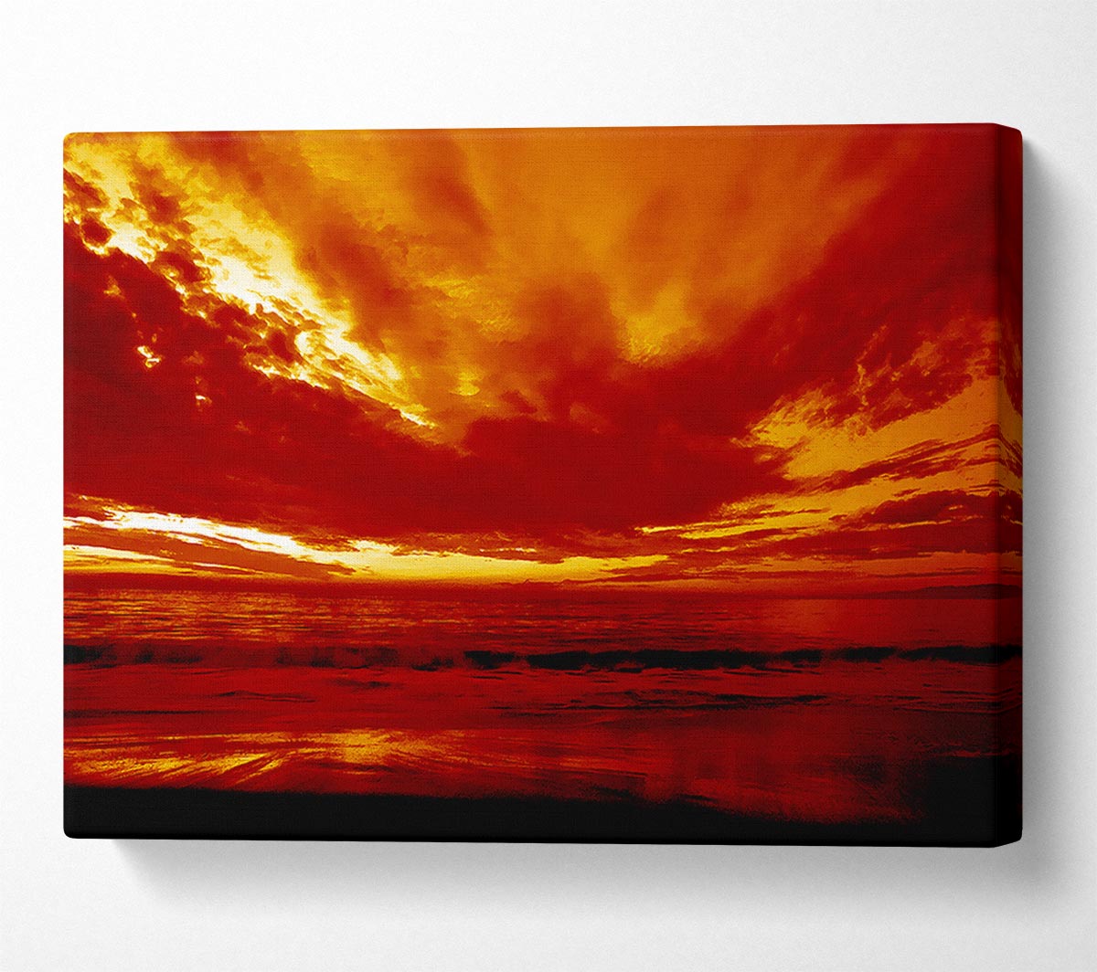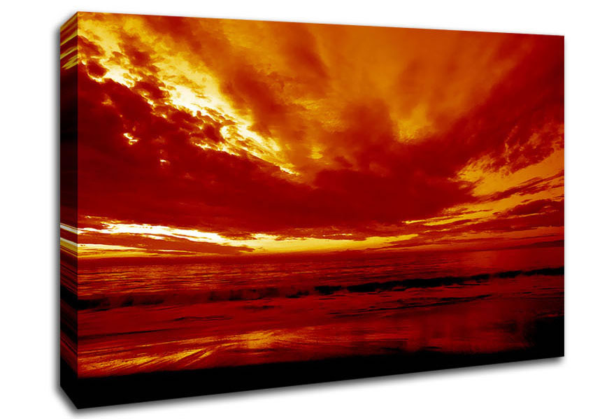 Vibrant Red Skys Canvas Print handmade in the UK. Stretched over a 2 inch thick wooden box frame, ready to hang on your wall.