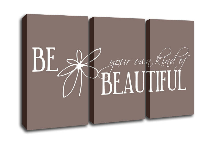 Be Your Own Kind Beige 3 Panel Canvas Print handmade in the UK. Stretched over a 2 inch thick wooden box frame, ready to hang on your wall.