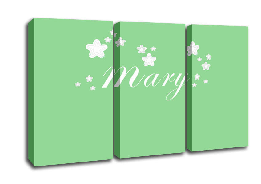 Girls Room Quote Your Name In Stars Green 3 Panel Canvas Print handmade in the UK. Stretched over a 2 inch thick wooden box frame, ready to hang on your wall.