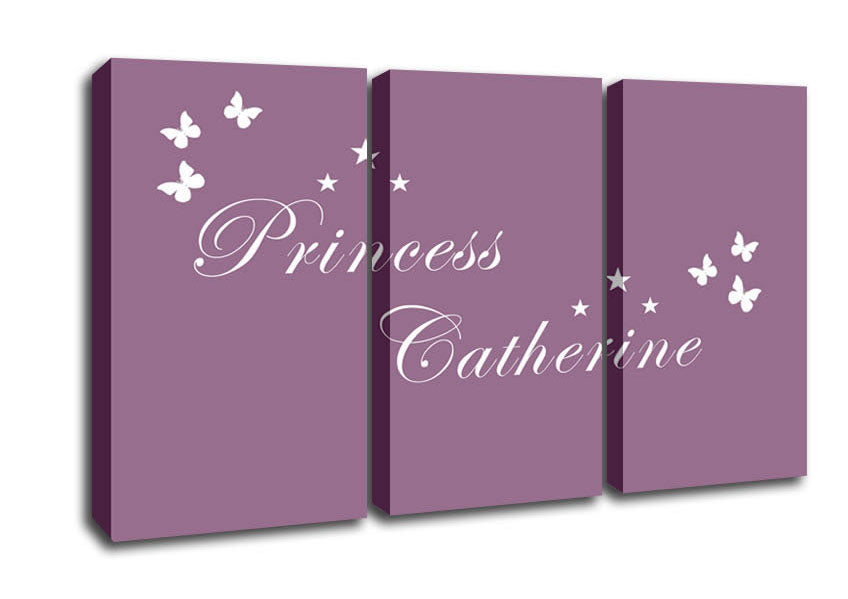 Girls Room Quote Your Own Name Princess Dusty Pink 3 Panel Canvas Print handmade in the UK. Stretched over a 2 inch thick wooden box frame, ready to hang on your wall.