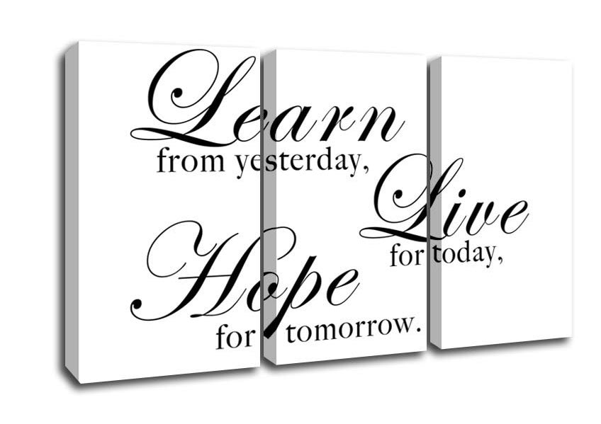 Home Quote Learn Live Hope White 3 Panel Canvas Print handmade in the UK. Stretched over a 2 inch thick wooden box frame, ready to hang on your wall.