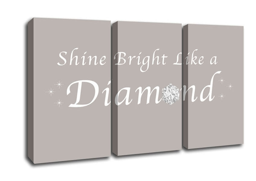 Music Quote Shine Bright Like A Diamond Rihanna Beige 3 Panel Canvas Print handmade in the UK. Stretched over a 2 inch thick wooden box frame, ready to hang on your wall.