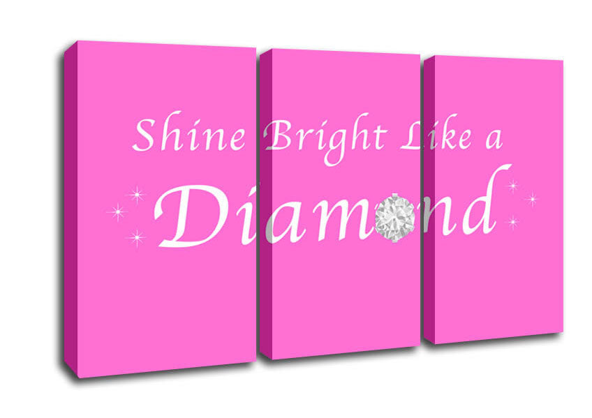 Music Quote Shine Bright Like A Diamond Rihanna Vivid Pink 3 Panel Canvas Print handmade in the UK. Stretched over a 2 inch thick wooden box frame, ready to hang on your wall.