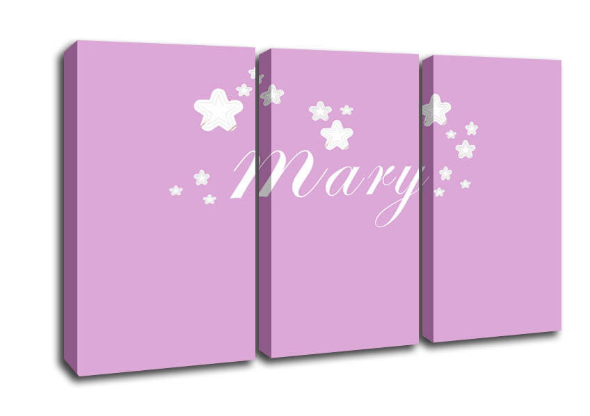 Your Name In Stars Pink 3 Panel Canvas Print handmade in the UK. Stretched over a 2 inch thick wooden box frame, ready to hang on your wall.