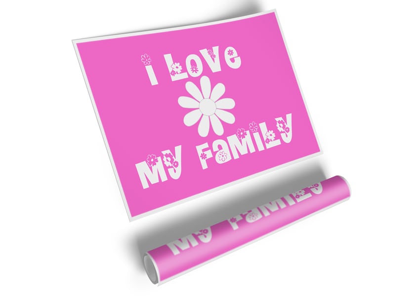 I Love My Family Vivid Pink Poster printed on high quality canvas paper, ready to display.