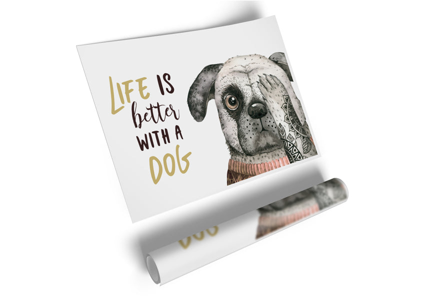 Life Is Better With A Dog Poster printed on high quality canvas paper, ready to display.