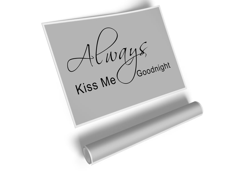 Love Quote Always Kiss Me Goodnight 2 Grey Poster printed on high quality canvas paper, ready to display.