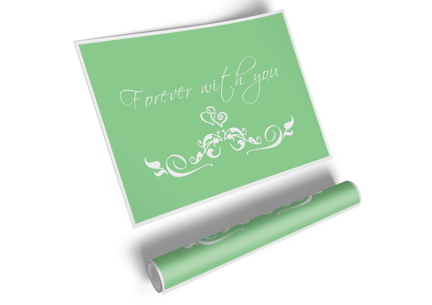 Love Quote Forever With You Green Poster printed on high quality canvas paper, ready to display.