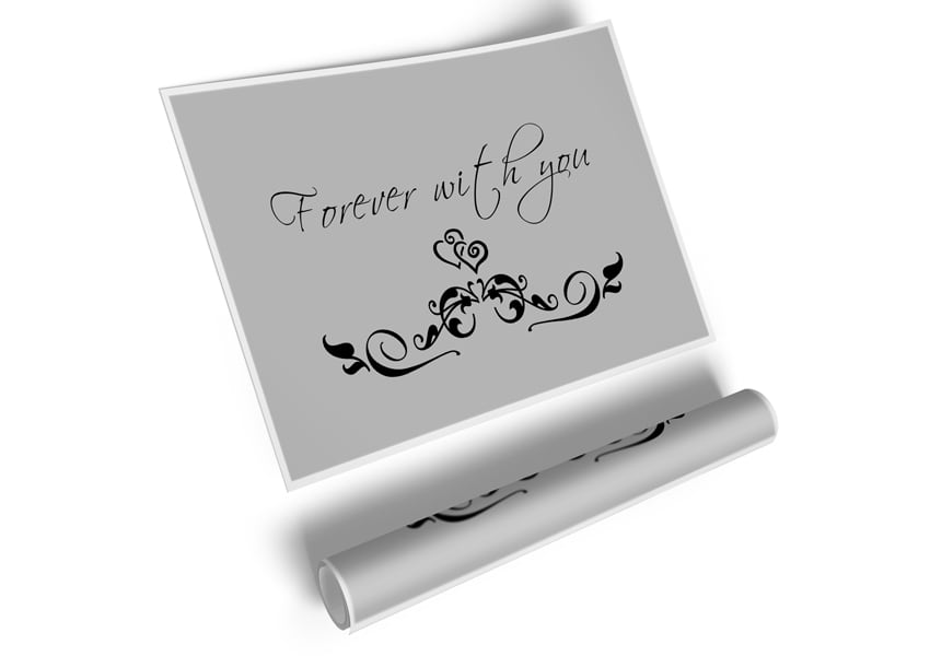 Love Quote Forever With You Grey Poster printed on high quality canvas paper, ready to display.
