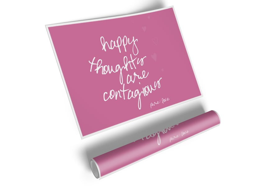 Love Quote Happy Thoughts Are Contagious Pink Poster printed on high quality canvas paper, ready to display.