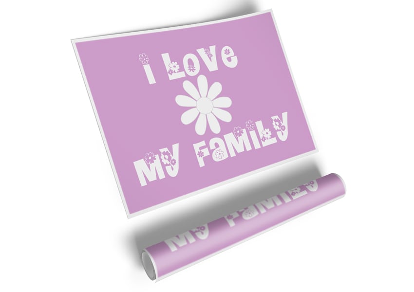 Love Quote I Love My Family Pink Poster printed on high quality canvas paper, ready to display.