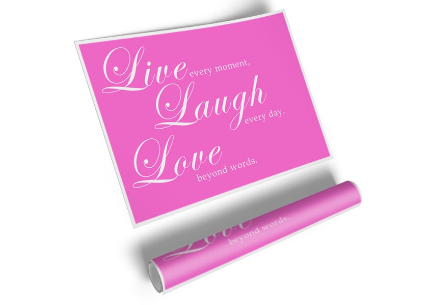 Love Quote Live Laugh Love 2 Vivid Pink Poster printed on high quality canvas paper, ready to display.