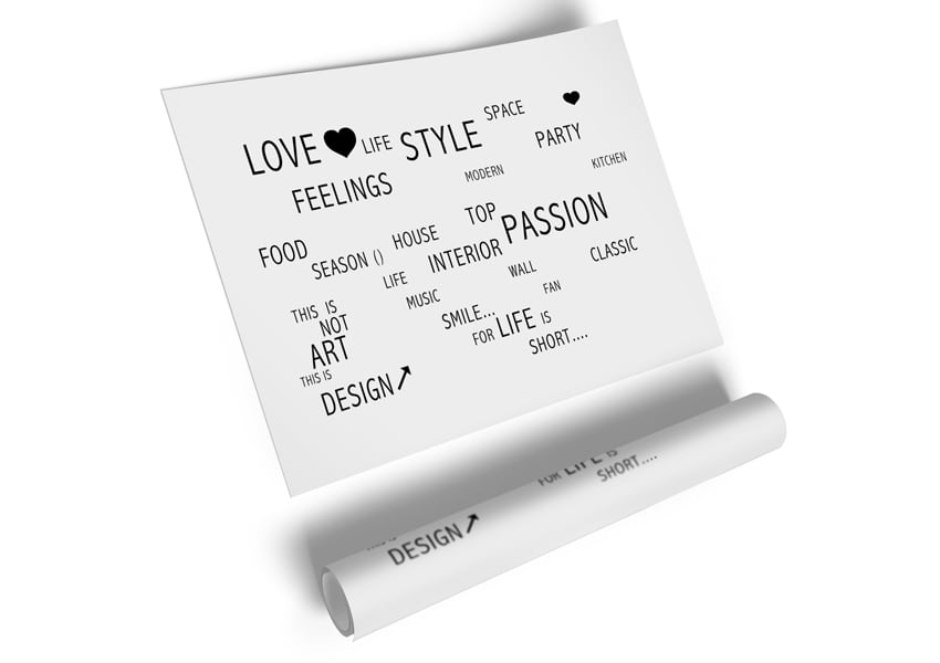Love Quote Love Life White Poster printed on high quality canvas paper, ready to display.