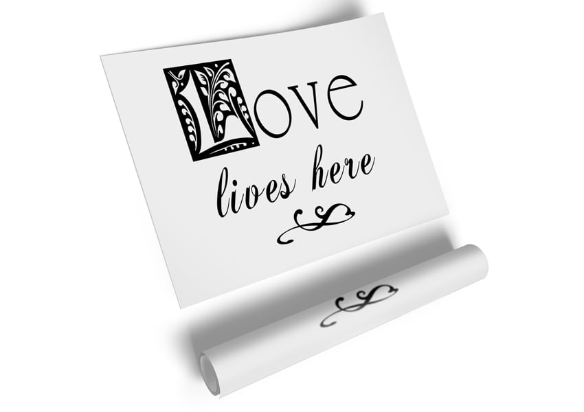Love Quote Love Lives Here Poster printed on high quality canvas paper, ready to display.