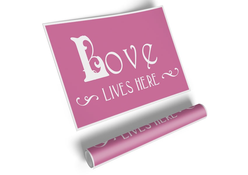 Love Quote Love Lives Here Vines Pink Poster printed on high quality canvas paper, ready to display.