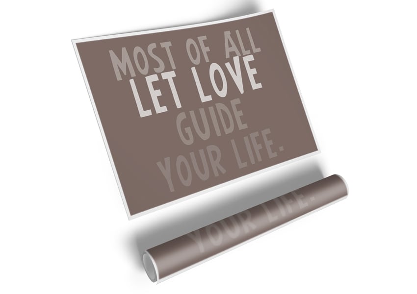 Love Quote Most Of All Let Love Guide Your Life Beige Poster printed on high quality canvas paper, ready to display.