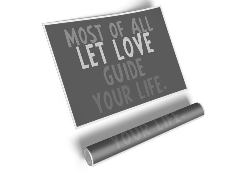 Love Quote Most Of All Let Love Guide Your Life Grey Poster printed on high quality canvas paper, ready to display.