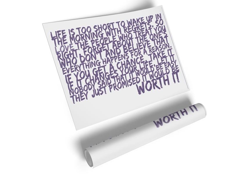 Motivational Quote Life Is Too Short Your Worth It Lilac Poster printed on high quality canvas paper, ready to display.