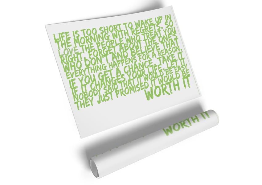 Motivational Quote Life Is Too Short Your Worth It Lime Green Poster printed on high quality canvas paper, ready to display.