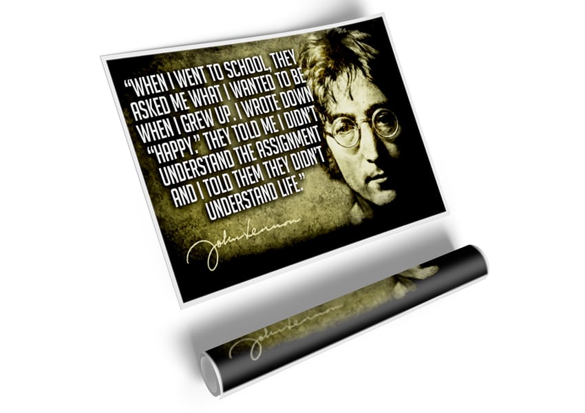Motivational Quote Music Quote John Lennon Happy Poster printed on high quality canvas paper, ready to display.