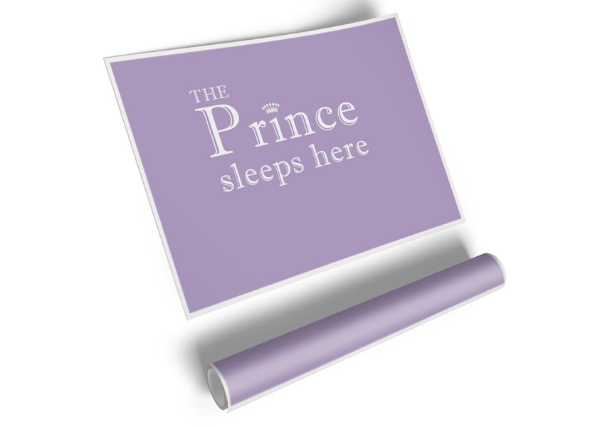Nursery Quote The Prince Sleeps Here Lilac Poster printed on high quality canvas paper, ready to display.