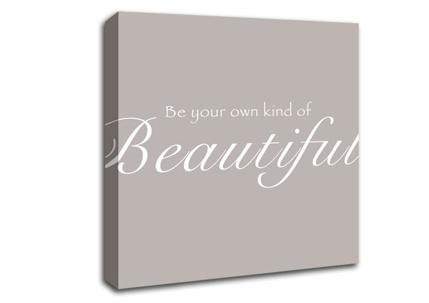 Be Your Own Kind Of Beautiful Beige Square Canvas Print handmade in the UK. Stretched over a 2 inch thick wooden box frame, ready to hang on your wall.