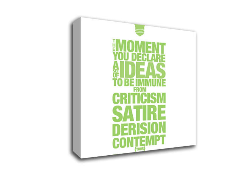Motivational Quote Freedom Of Thought Lime Green Square Canvas Print handmade in the UK. Stretched over a 2 inch thick wooden box frame, ready to hang on your wall.