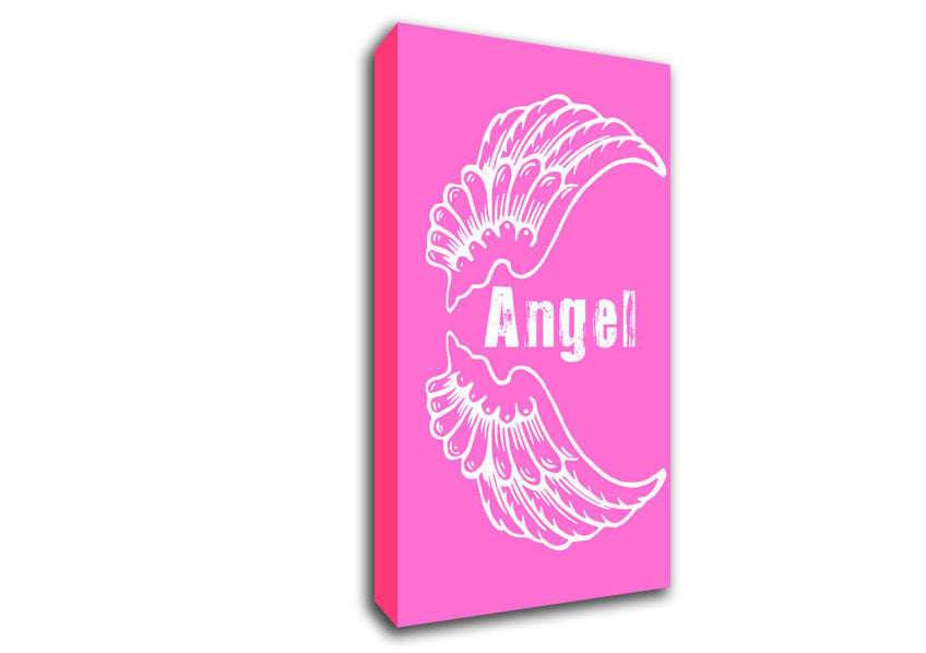 Angel Wings 3 Vivid Pink Wide Canvas Print handmade in the UK. Stretched over a 2 inch thick wooden box frame, ready to hang on your wall.