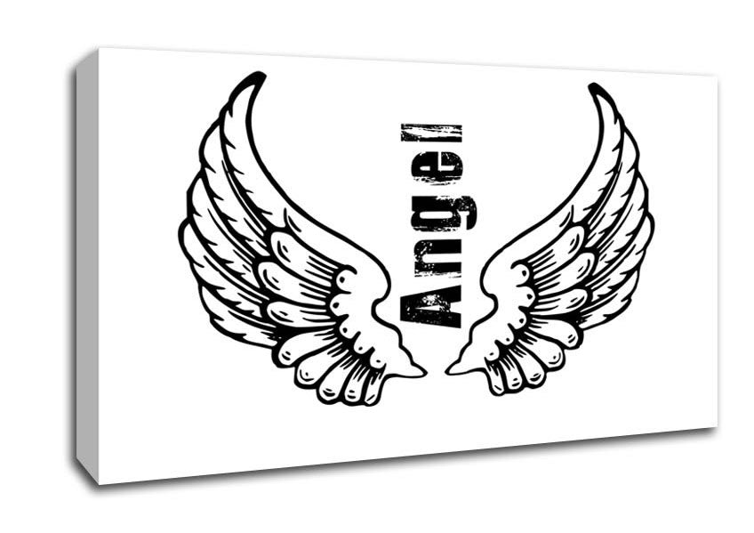 Angel Wings 3 White Wide Canvas Print handmade in the UK. Stretched over a 2 inch thick wooden box frame, ready to hang on your wall.