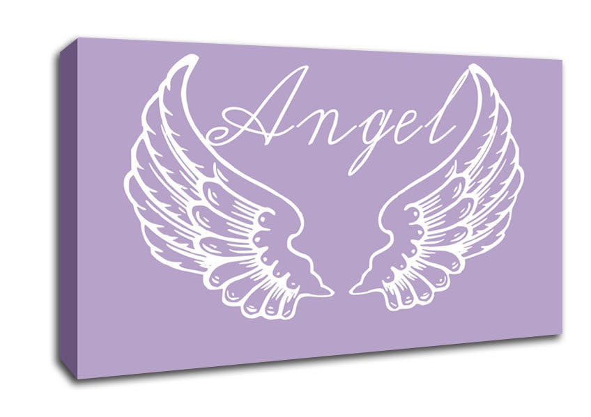 Angel Wings 4 Lilac Wide Canvas Print handmade in the UK. Stretched over a 2 inch thick wooden box frame, ready to hang on your wall.