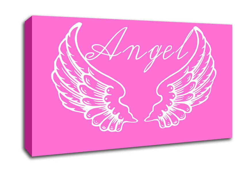 Angel Wings 4 Vivid Pink Wide Canvas Print handmade in the UK. Stretched over a 2 inch thick wooden box frame, ready to hang on your wall.