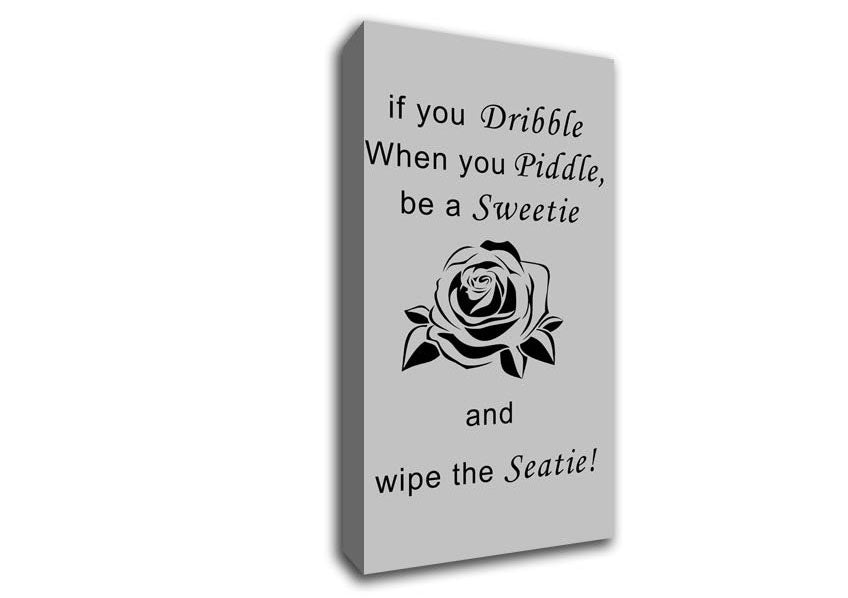 Bathroom Quote If You Dribble Grey Wide Canvas Print handmade in the UK. Stretched over a 2 inch thick wooden box frame, ready to hang on your wall.