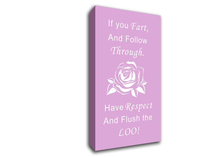 Bathroom Quote If You Fart Pink Wide Canvas Print handmade in the UK. Stretched over a 2 inch thick wooden box frame, ready to hang on your wall.