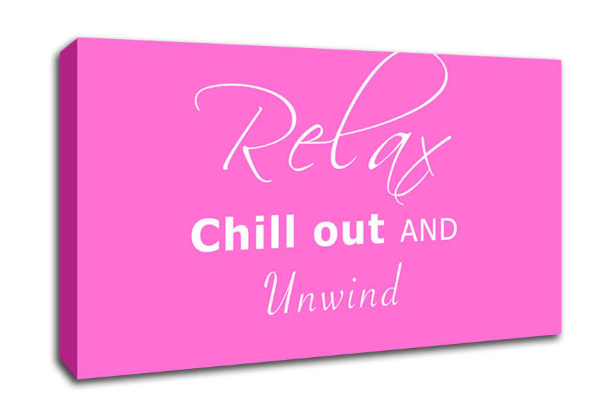 Bathroom Quote Relax Chill Out Vivid Pink Wide Canvas Print handmade in the UK. Stretched over a 2 inch thick wooden box frame, ready to hang on your wall.