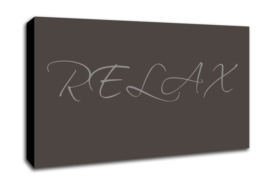 Bathroom Quote Relax Chocolate Wide Canvas Print handmade in the UK. Stretched over a 2 inch thick wooden box frame, ready to hang on your wall.