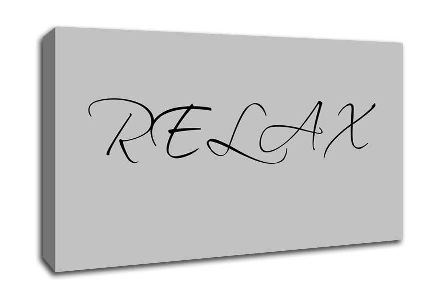 Bathroom Quote Relax Grey Wide Canvas Print handmade in the UK. Stretched over a 2 inch thick wooden box frame, ready to hang on your wall.