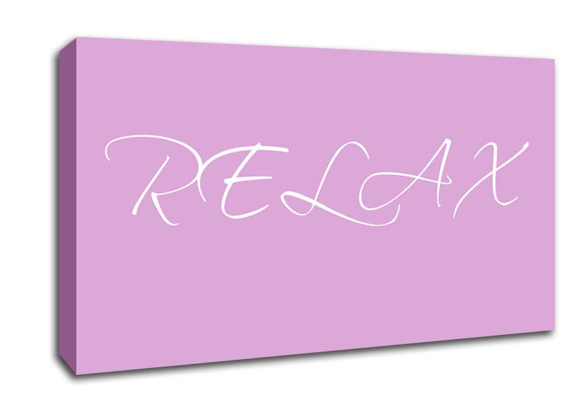 Bathroom Quote Relax Pink Wide Canvas Print handmade in the UK. Stretched over a 2 inch thick wooden box frame, ready to hang on your wall.
