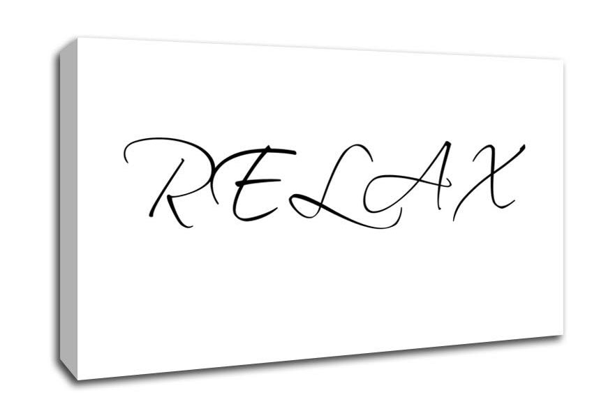 Bathroom Quote Relax White Wide Canvas Print handmade in the UK. Stretched over a 2 inch thick wooden box frame, ready to hang on your wall.